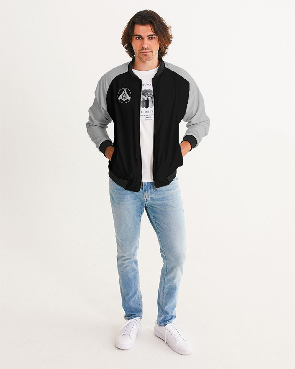 Hand-cut and crafted with care, your custom designed Men’s Bomber Jacket is great for casual or sportswear. Its lightweight, airy fabric is lined with the perfect amount of insulation for the chillier months making this a great year round go-to.
